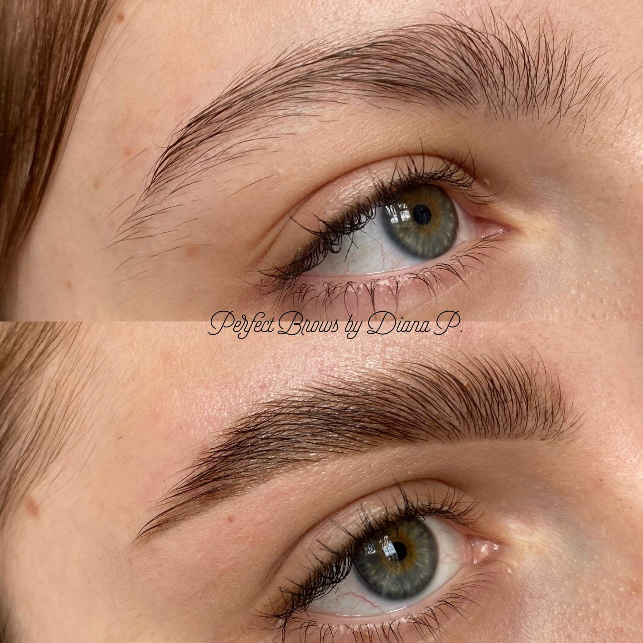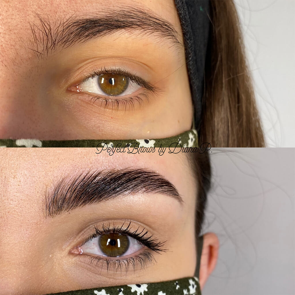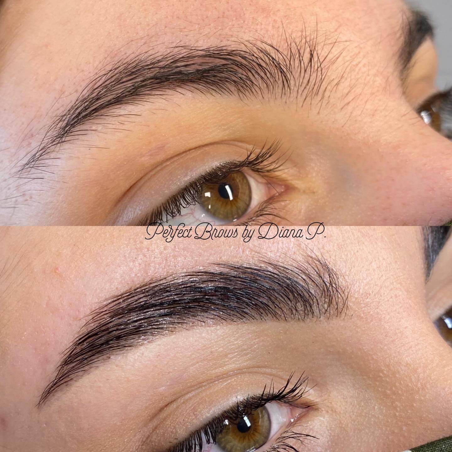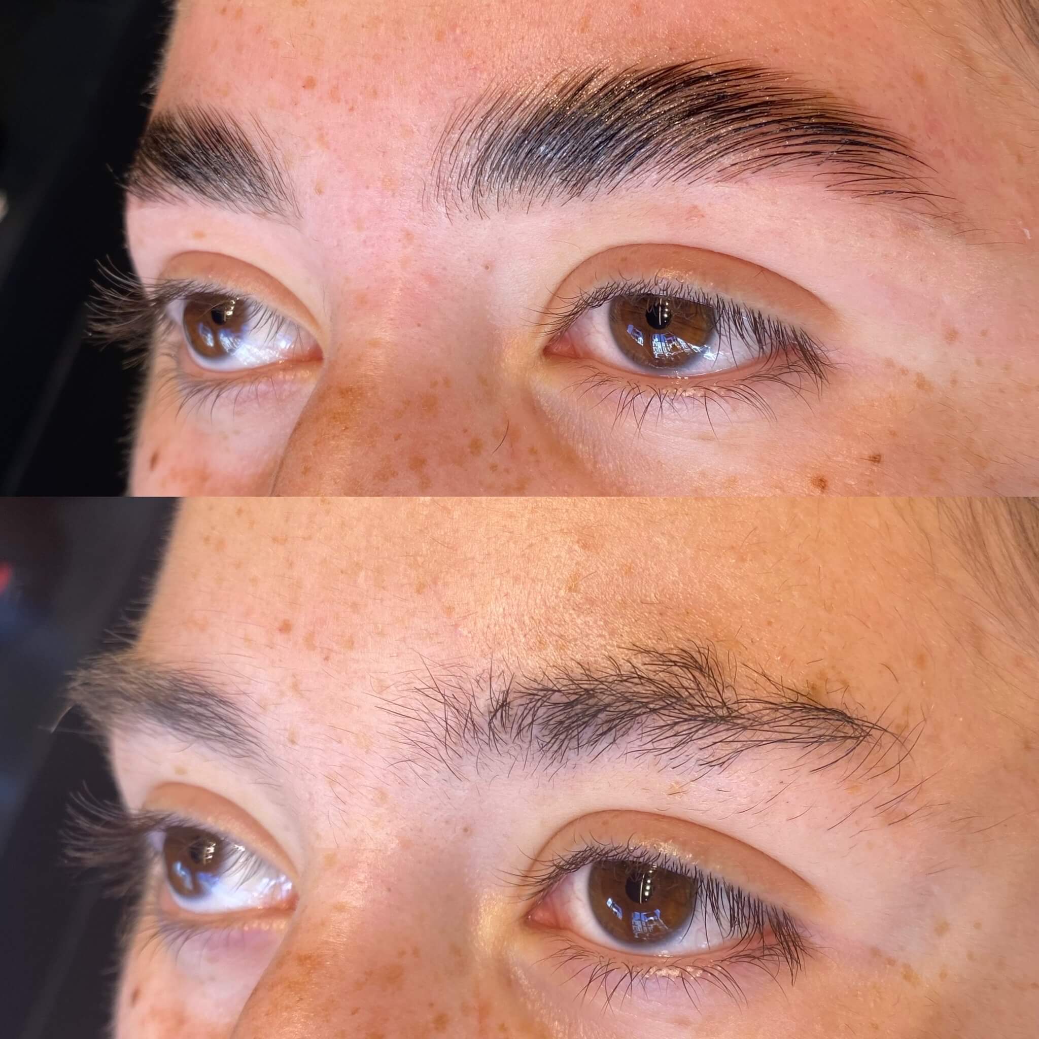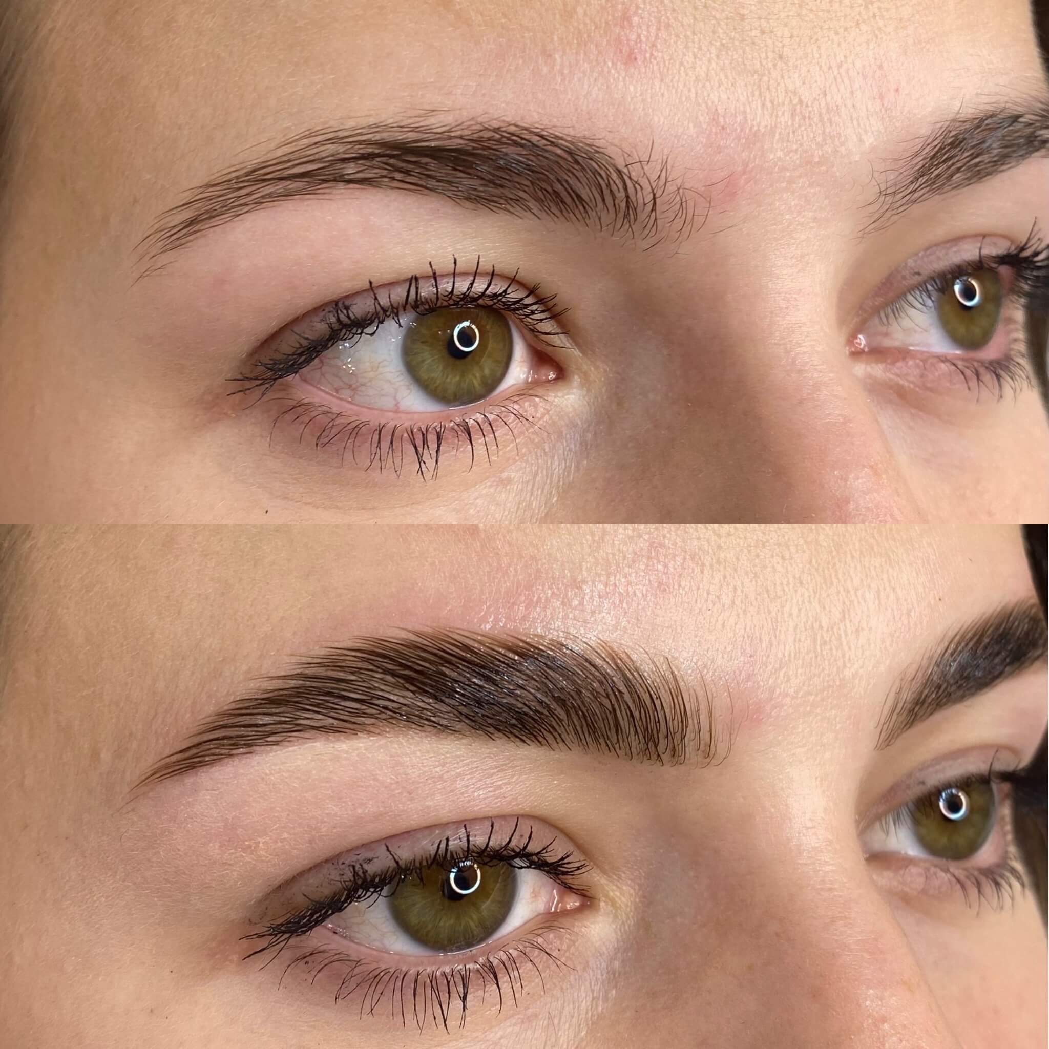 This process uses a chemical solution to adjust your eyebrow hairs by straightening them to stay in the desired direction and can last for up to 6 weeks. It’s great for taming thick, unruly brows and encourages the hair to grow in the same direction. It includes shaping and tinting (optional)