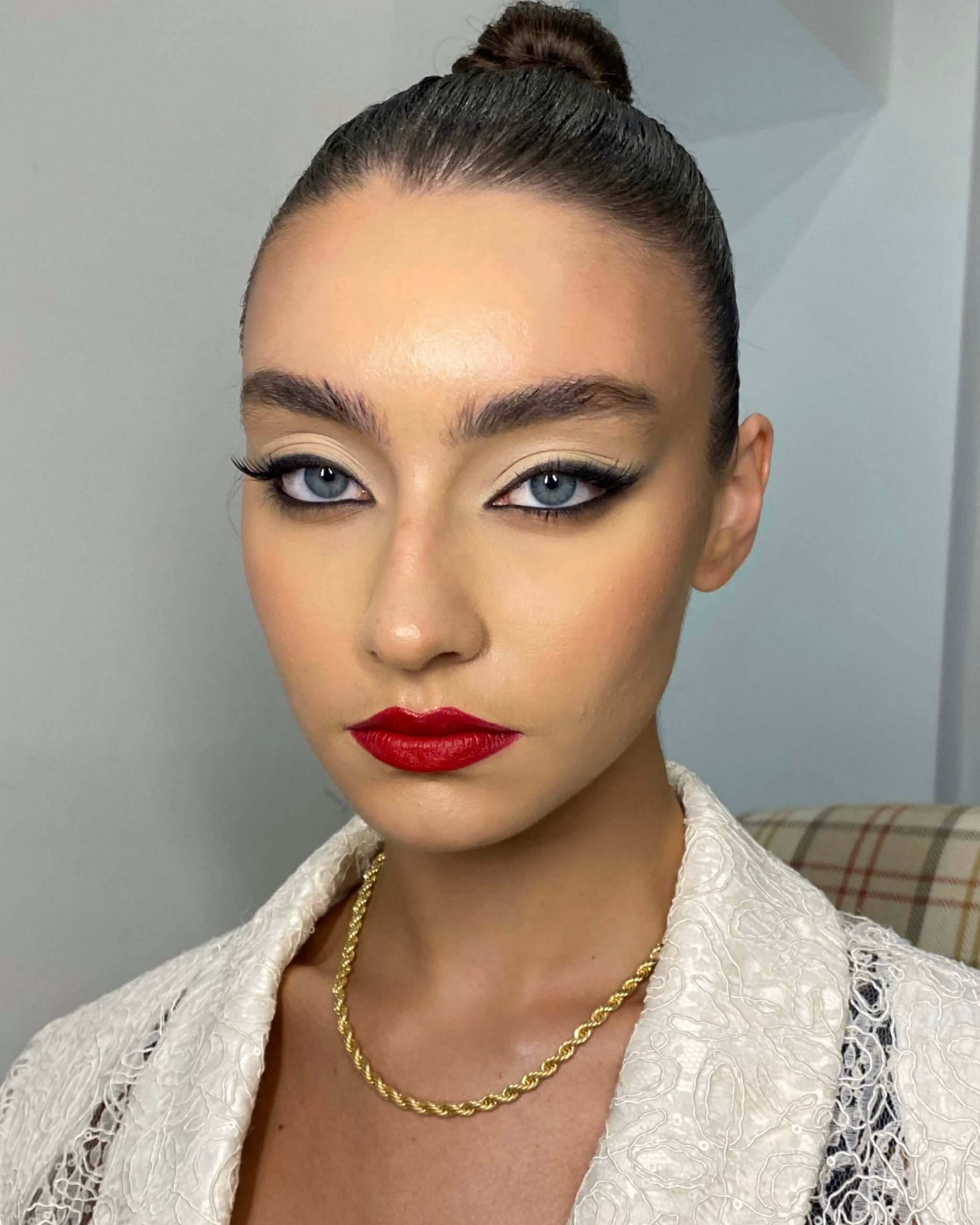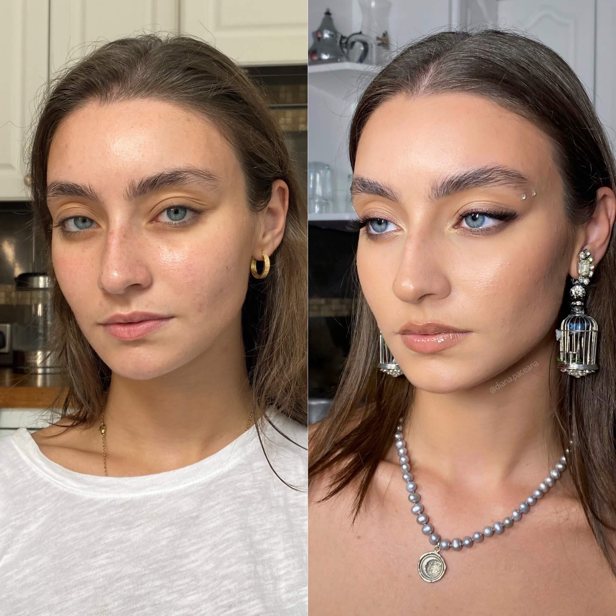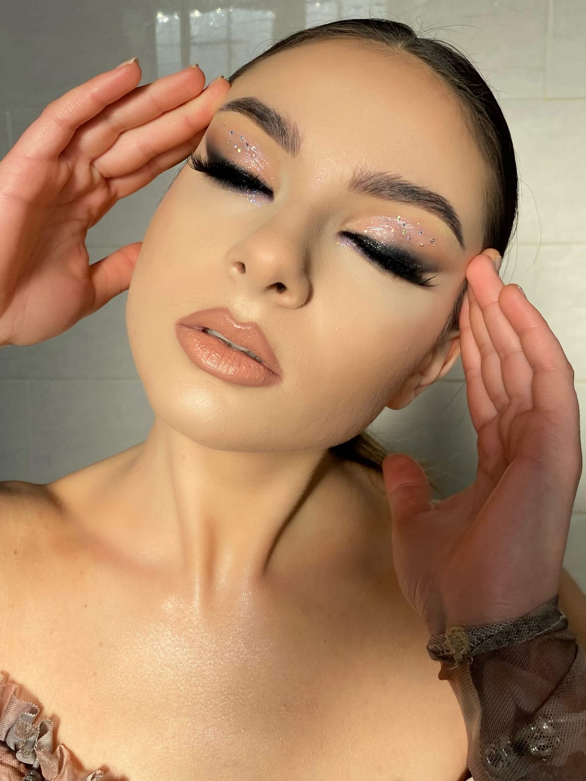 I typically recommend this version to clients that want to look natural, but an elevated version of themselves. Not over the top at all, and is often the least amount of makeup as far as glam goes. The infamous “no makeup, makeup look”. There is typically some contour and highlight, but just enough to accentuate your features, and natural-looking lashes, long and wispy. Eyeshadow is usually matte tones of browns and neutrals.