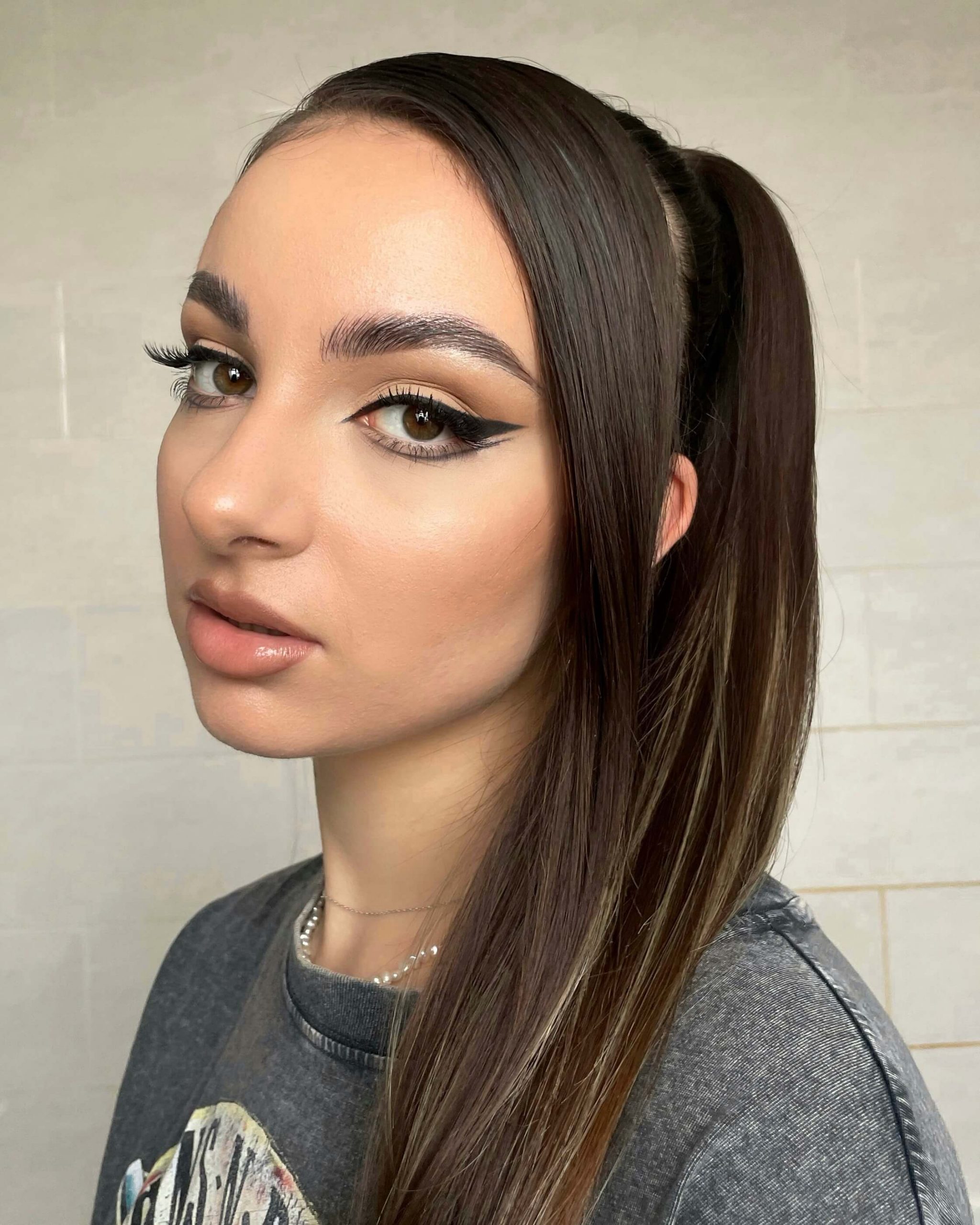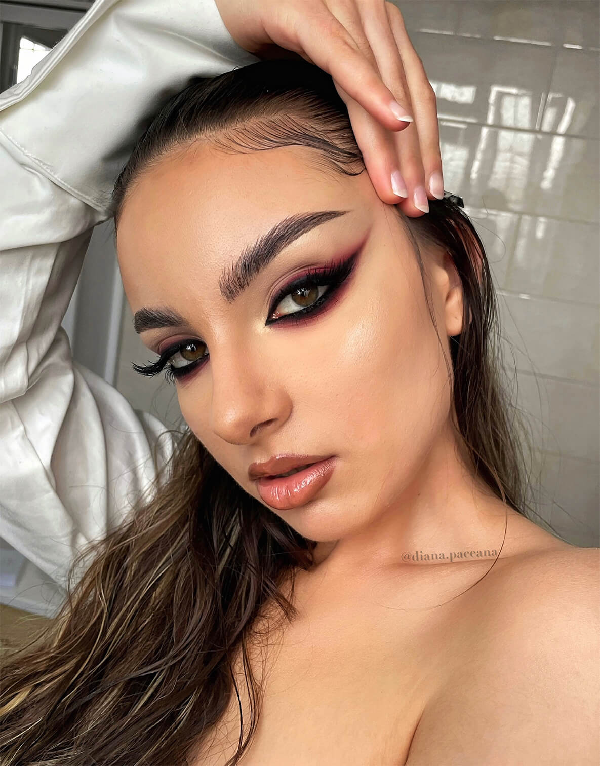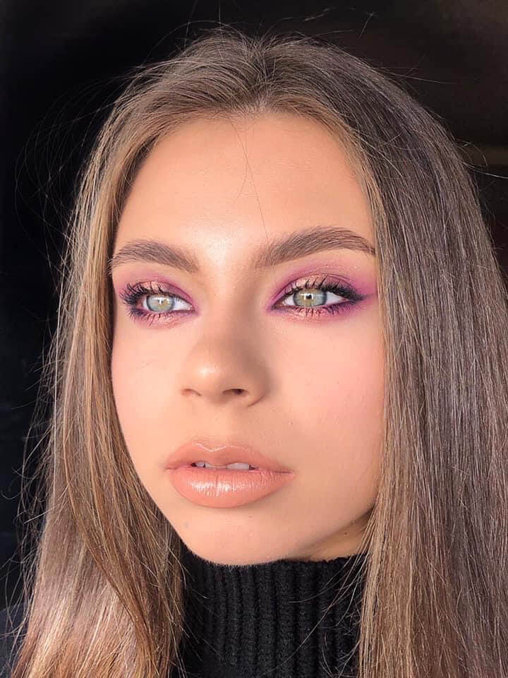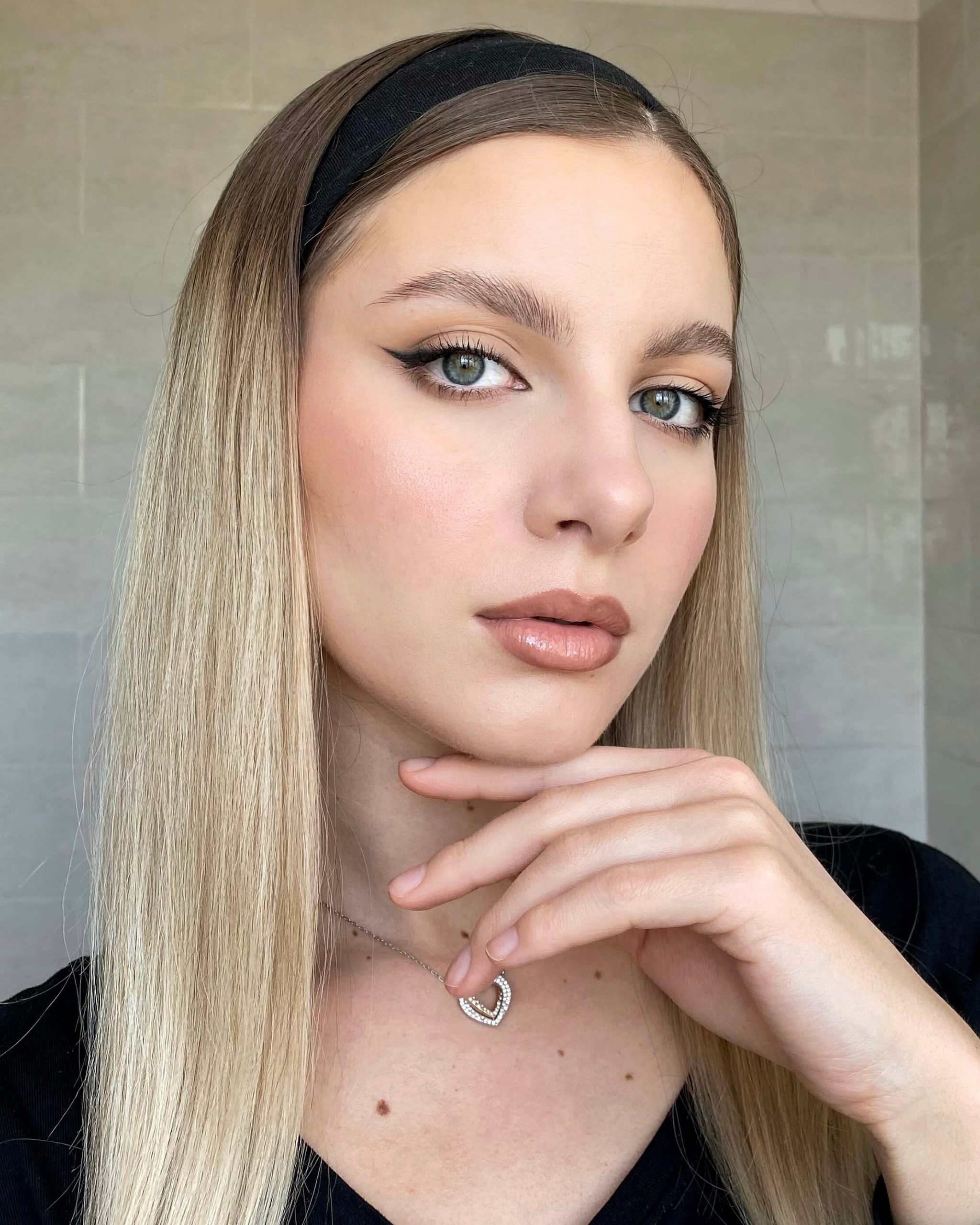 I typically recommend this version to clients that want to look natural, but an elevated version of themselves. Not over the top at all, and is often the least amount of makeup as far as glam goes. The infamous “no makeup, makeup look”. There is typically some contour and highlight, but just enough to accentuate your features, and natural-looking lashes, long and wispy. Eyeshadow is usually matte tones of browns and neutrals.
